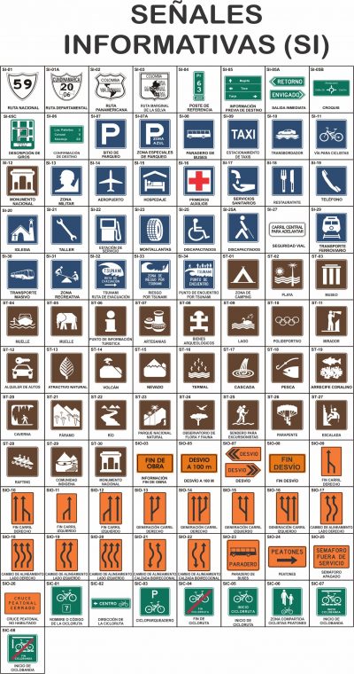 Adicionalmente, las mismas se ubican en áreas de gran atractivo turístico o en vías nacionales e intermunicipales. Su propósito principal es proporcionar orientación a viajeros o a aquellos que no están familiarizados con la zona y que carecen de conocimiento de la ruta.